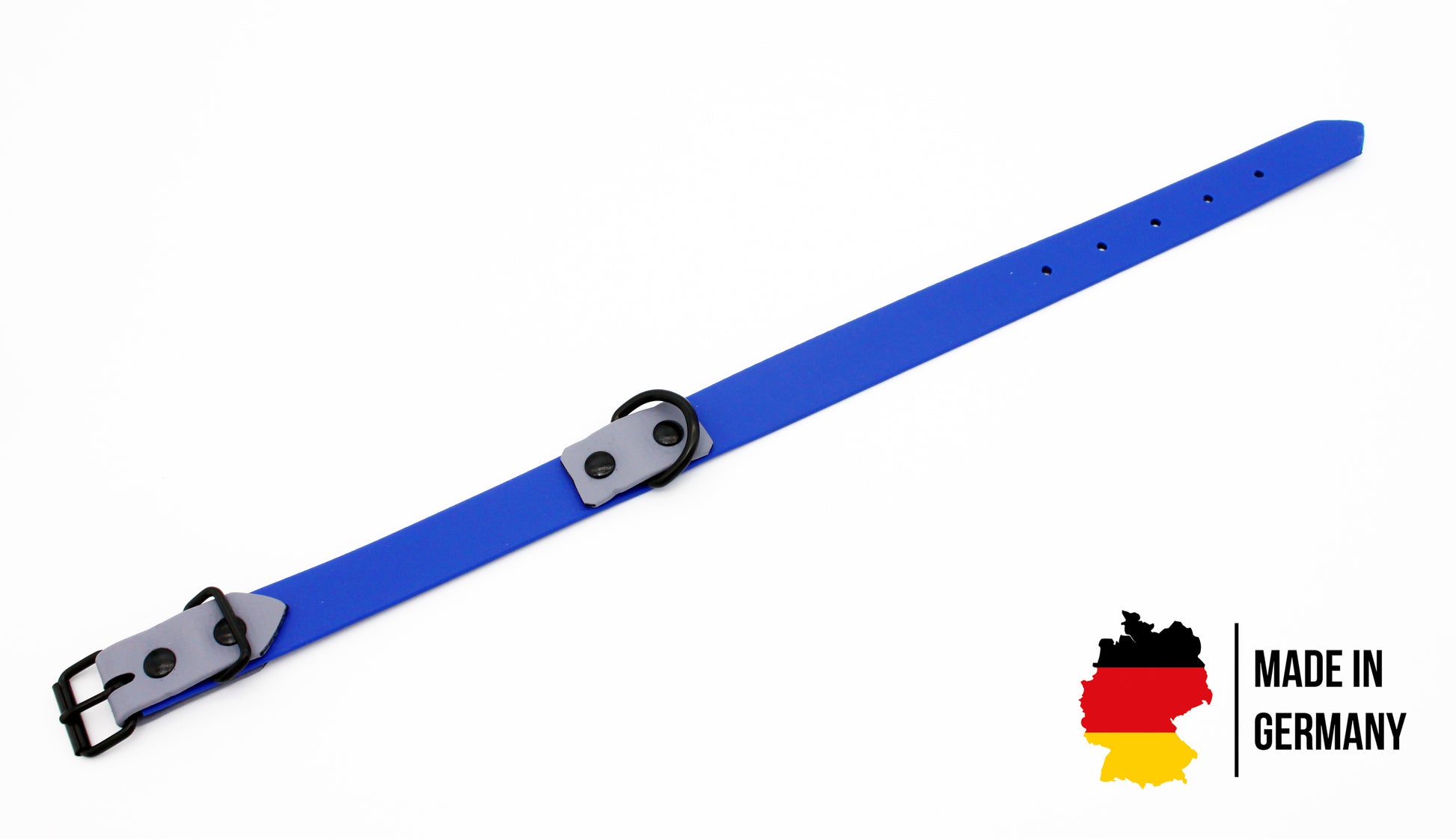Das Halsband aus original BioThane® verbindet höchste Funktionalität mit stilvollem Design. In unserer Manufaktur in Deutschland gefertigt, bietet es die edle Optik von Leder – ist dabei aber deutlich robuster, wetterfest und besonders pflegeleicht. Ideal für aktive Hunde und anspruchsvolle Halter.